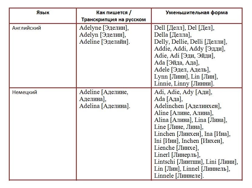 Происхождение имени Аделина: