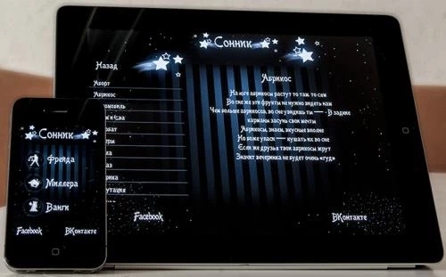 Программа включает три самых популярных и нашумевших сонника – виновников нашей статьи – сонники Миллера, Ванги и Фрейда. Все три сонника любезно собраны и красиво оформлены для вас разработчиками программы, которой очень легко и удобно пользоваться. У нее понятный и изысканный интерфейс с дизайном в стиле звездной ночи, что придется по вкусу многим любителям толкований снов. На фото представлен интерфейс этой программы Сонник для мобильных телефонов и вы все можете увидеть воочию.